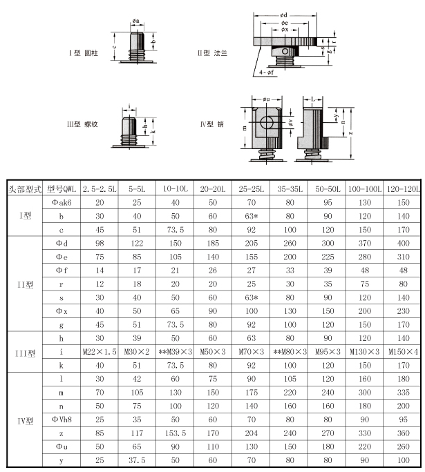 * 對2型結構比值為80; ** 可按 M40x3 加工